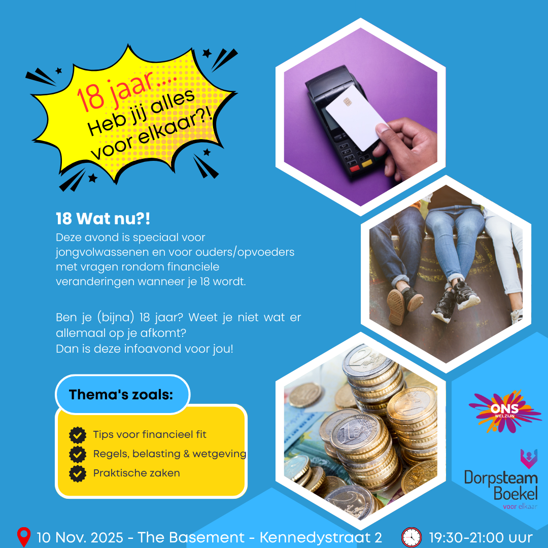 Tijdens de infoavond β18, wat nu?!β helpen we jou Γ©n je ouders/opvoeders op weg met praktische tips en inzichten over: